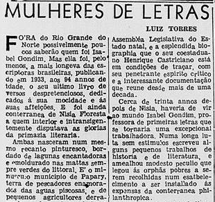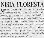 Também é publicado no Diário do Rio de Janeiro, uma nota elogiosa à Nísia Floresta e ao seu retorno ao Brasil.
